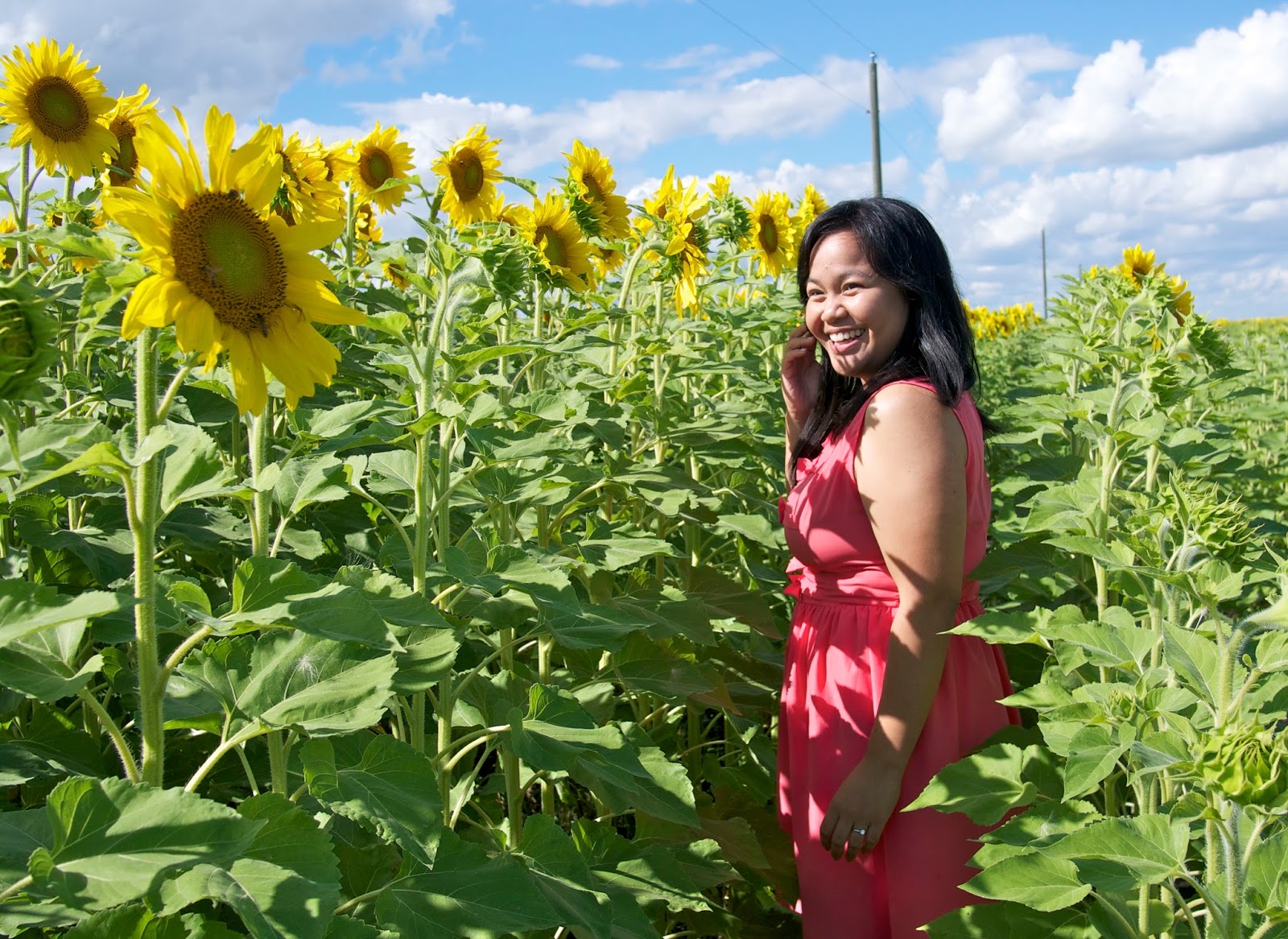 I love sunflowers fields, they'so so beautiful and colourful, and the fact that you put a coral dress on contrasts with the yellow and it's so eye-catching!